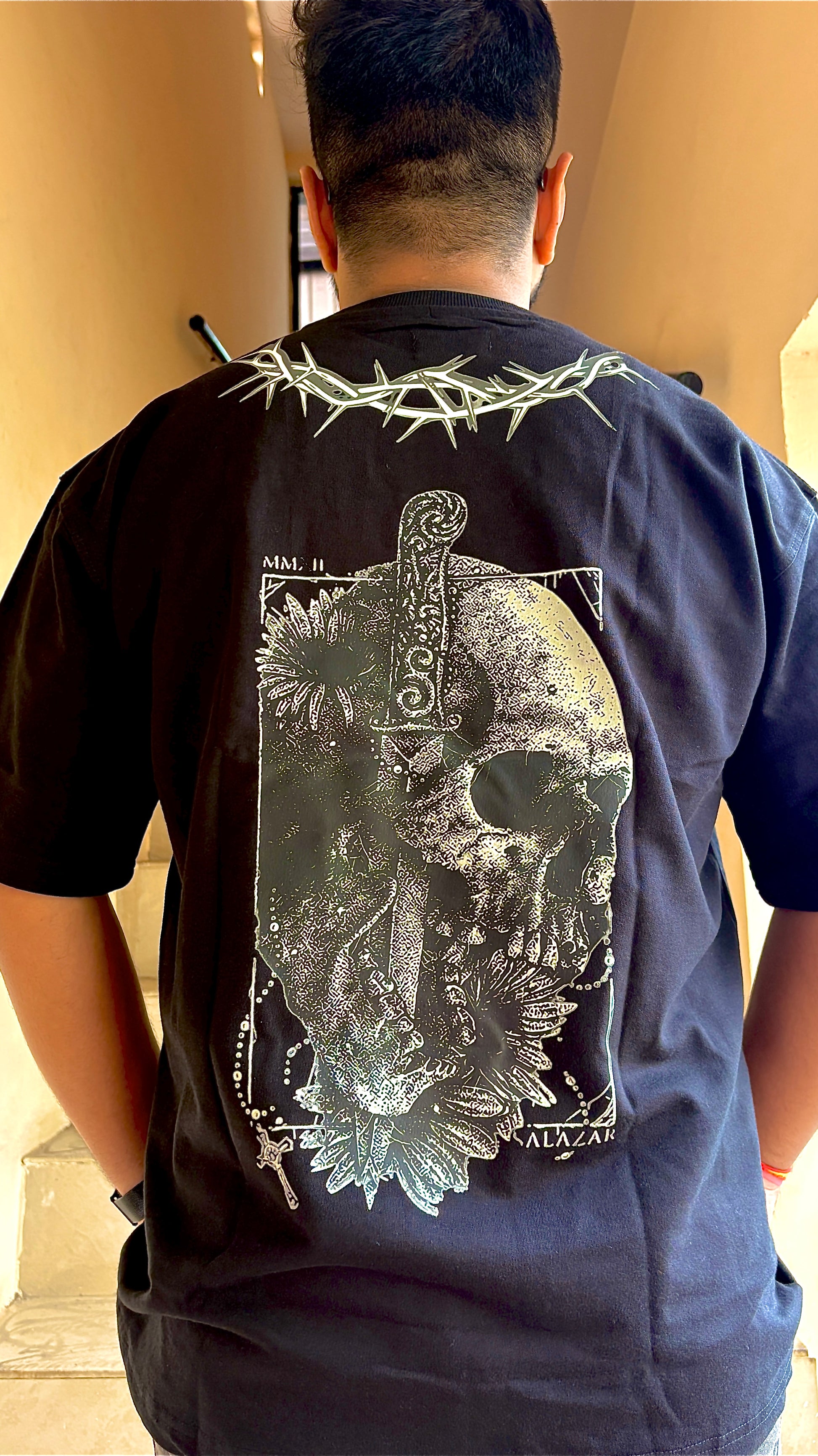 This black oversized T-shirt is crafted from 240 GSM, 100% premium cotton, offering a perfect balance of weight, softness, and breathability. The dense knit ensures long-lasting durability while keeping you comfortable all day, and the relaxed drop-shoulder cut gives it that effortlessly cool, streetwear-ready silhouette. Featuring a bold classic skull design at the center, this tee is a fearless statement piece—perfect for those who embrace their edge while staying effortlessly stylish.