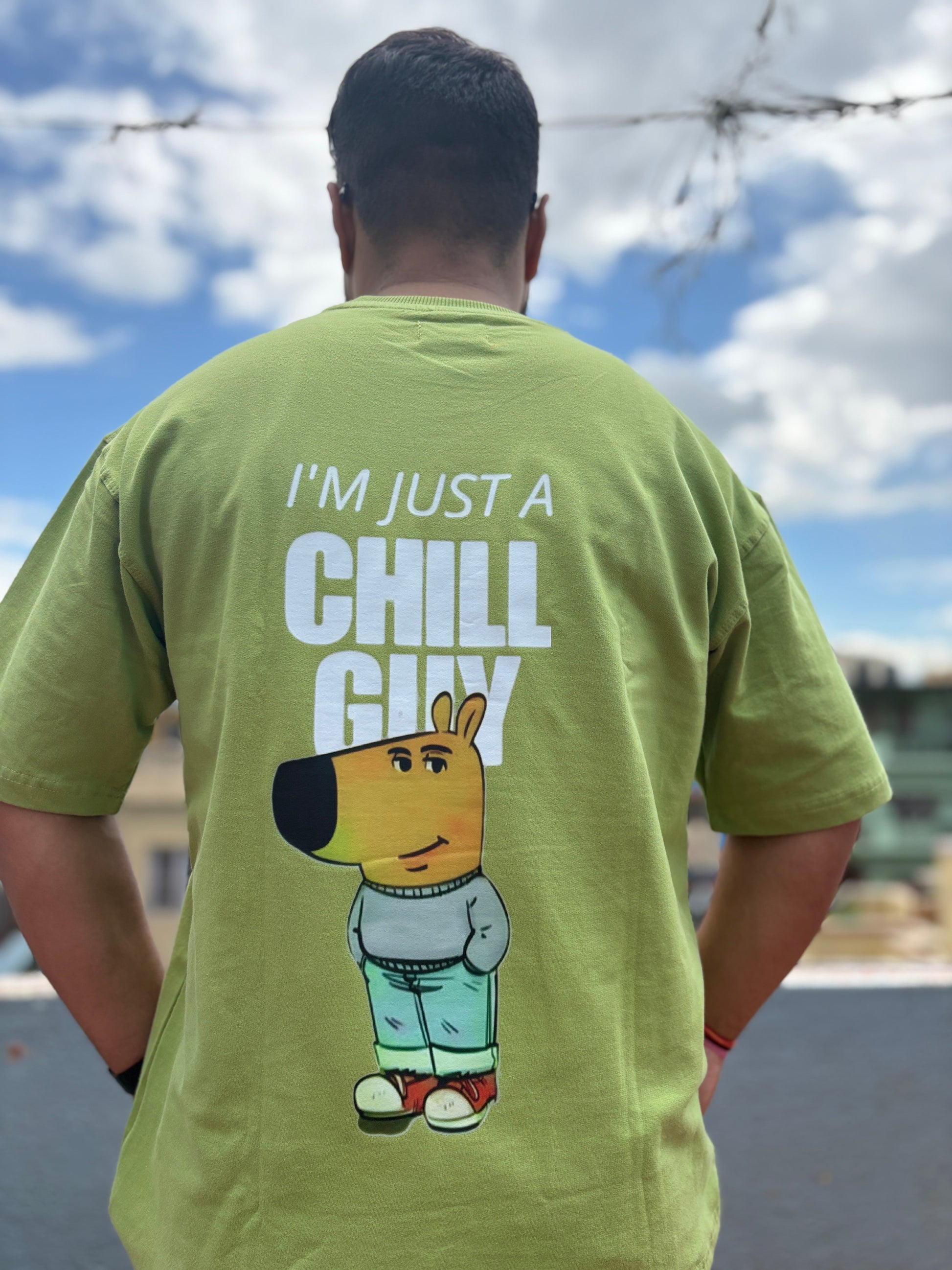 This Pista-colour oversized T-shirt is crafted from 240 GSM, 100% pure cotton that feels substantial yet stays light and breathable, giving you all-day comfort with a smooth, premium hand-feel. The dense weave keeps the shape intact wash after wash, while the roomy cut and drop-shoulder fit bring a relaxed streetwear vibe. Finished with the classic “I am just a chill guy” design, it’s the perfect mix of effortless style and everyday durability—made for those who like to stay cool without even trying.